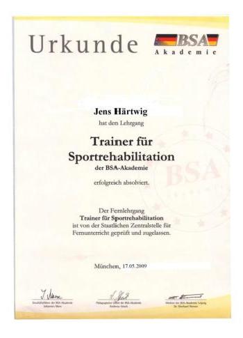 Entspannungstrainer Ausbildung Masseur&Bademeister Physiotherapeut Fitness Trainer Touristik Functional IST Indoor Cycling Instructor Powerbar TNS GÄSTESTIMMEN: SABRINA UND JAN “...Jens Du bist ein super Trainer, dem man wegen seiner Kompetenz direkt vertraut! Danke noch mal, dass Du mir die Angst wegen meiner „Knieprobleme“ genommen hast! Jetzt habe ich endlich wieder Spaß am Sport!...”   Wellness&Health Manager Fitnesstrainer B-Lizenz Ernährungsberater Methode Dorn Preuss Functional Training Trainer für Sportrehabilitation Kettlebell Laktatdiagnostik Med. Rehabilitation JENS HÄRTWIG
